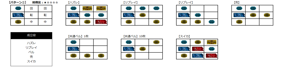 「青図柄/青BAR/黄図柄」停止時の停止型