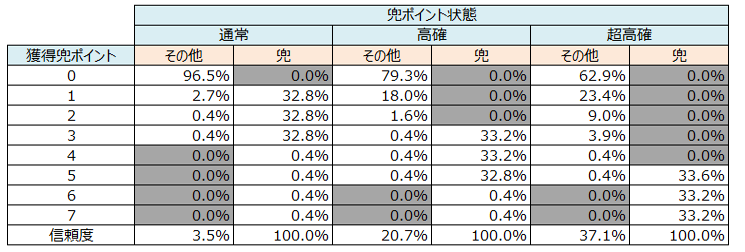 【通常】、【高確】、【超高確】の状態によって以下に差があります。