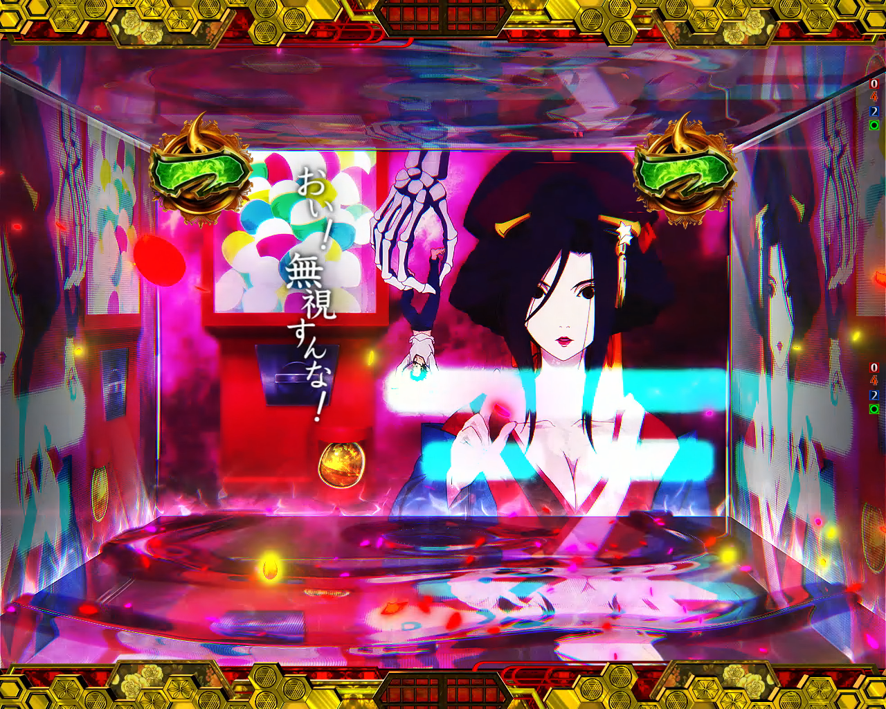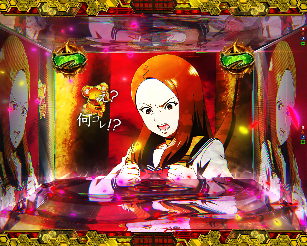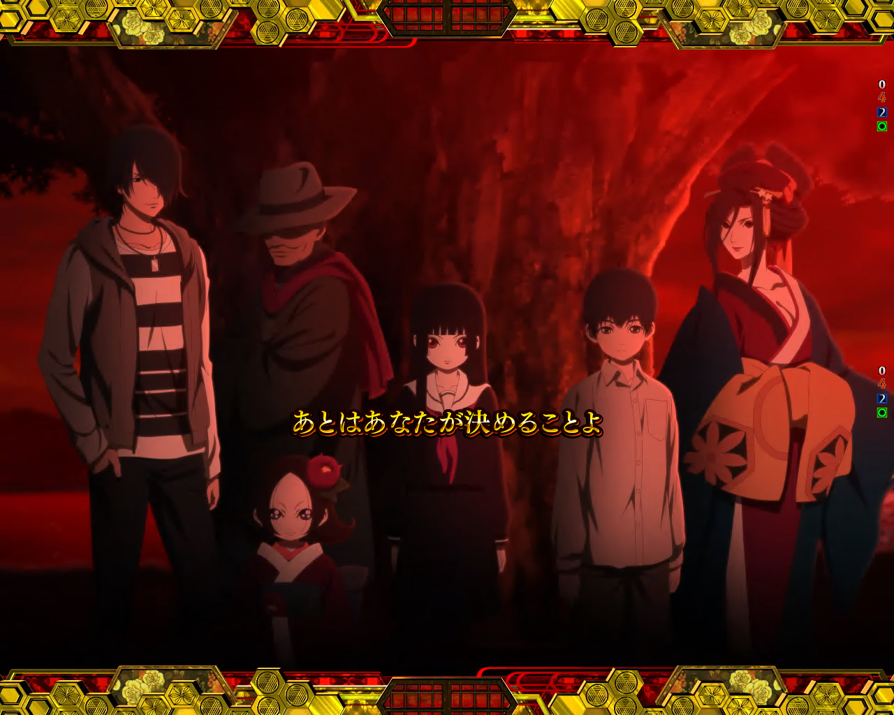 「きくり探索モード」ではミニキャラカスタム以外できくりが出現すると、きくりチャレンジに移行する仕様となっていますが、きくりではなくあいが出現すると地獄ジャッジの成功期待度も上がる激熱演出となっています。